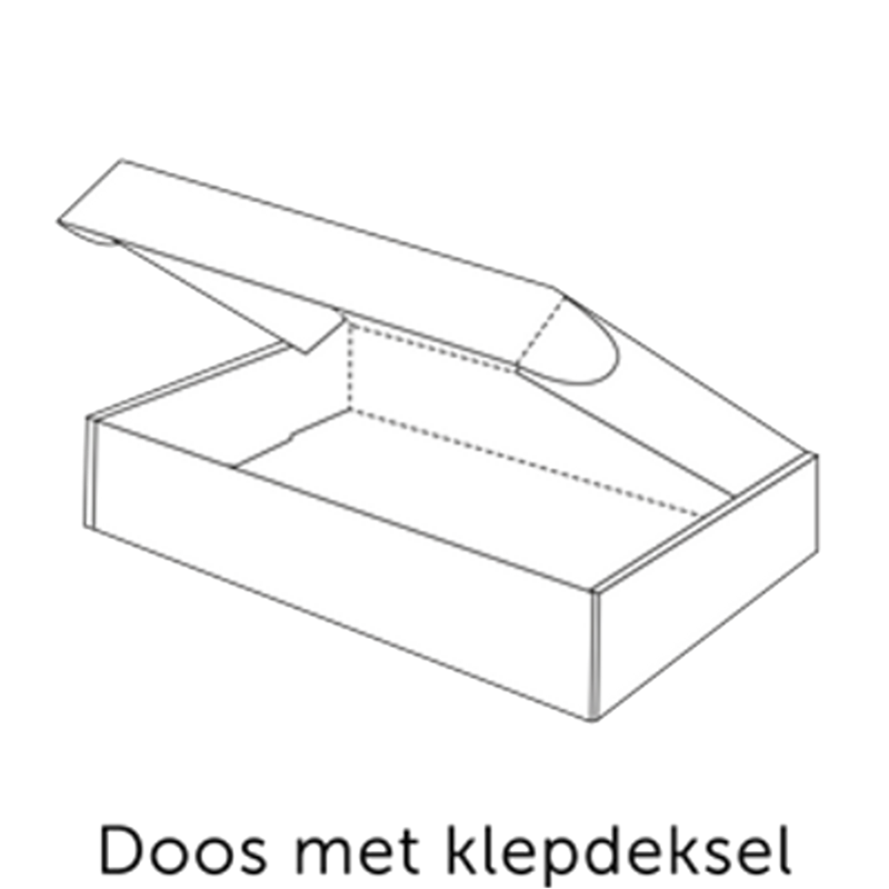 Beschrijving: Chique verzenddoos met klepdeksel en daardoor een grote opening. Een zeer sterke doos door zijn dubbelwandige uitvoering. Deze doos wordt niet verlijmd en kan je dus zelf in elkaar zetten. Gemaakt van een degelijke vouwkartonsoort, ook onbedrukt verkrijgbaar. Geschikt voor o.a: