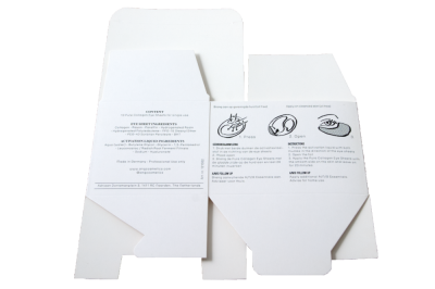 Mocht je twijfelen over de juiste papierdikte, neem dan contact met ons op. Ook bieden we de mogelijkheid een onbedrukte dummy te bestellen opdat je zelf de stevigheid van het doosje kan ervaren en eventueel de papierkeuze kan bijstellen.